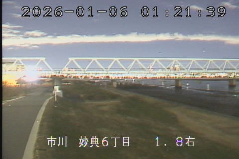江戸川妙典ライブカメラは、千葉県市川市妙典に設置された江戸川(江戸川放水路)・東京メトロ東西線(妙典駅~原木中山駅)・妙典河川敷緑地・市川市立妙典小学校・妙典公園付近・しおみばし付近が見えるライブカメラです。独自配信による静止画のライブ配信映像です。国土交通省による配信。