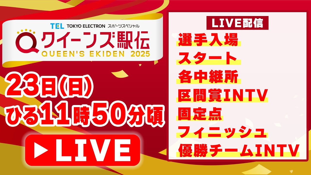 ライブカメラ https://www.youtube.com/watch?v=4UD4OkLA_DM YouTube公式チャンネル https://www.youtube.com/@tbs5947 クイーンズ駅伝 |