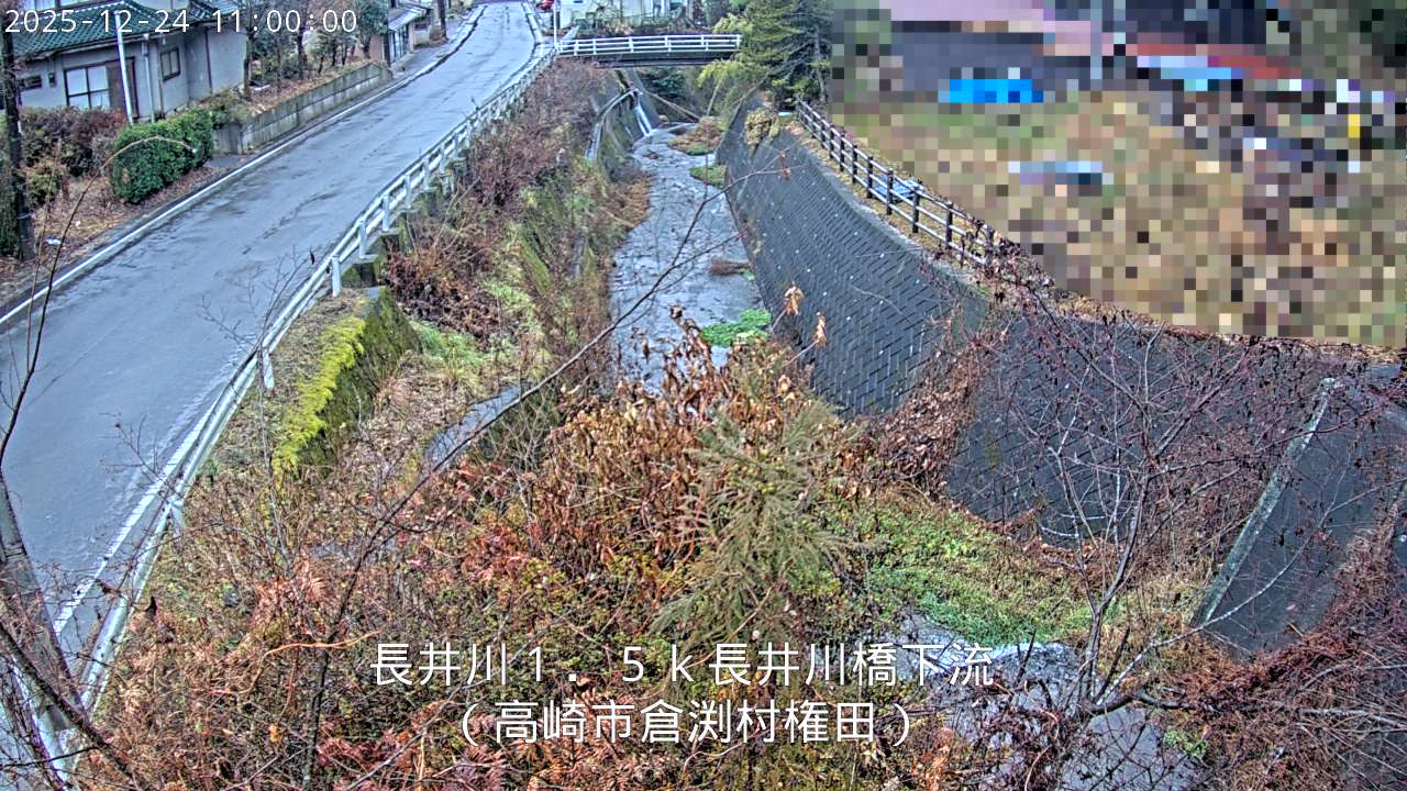 長井川長井川橋下流ライブカメラは、群馬県高崎市倉渕町権田の長井川橋下流に設置された長井川・国道406号が見えるライブカメラです。独自配信による静止画のライブ配信映像です。国土交通省による配信。