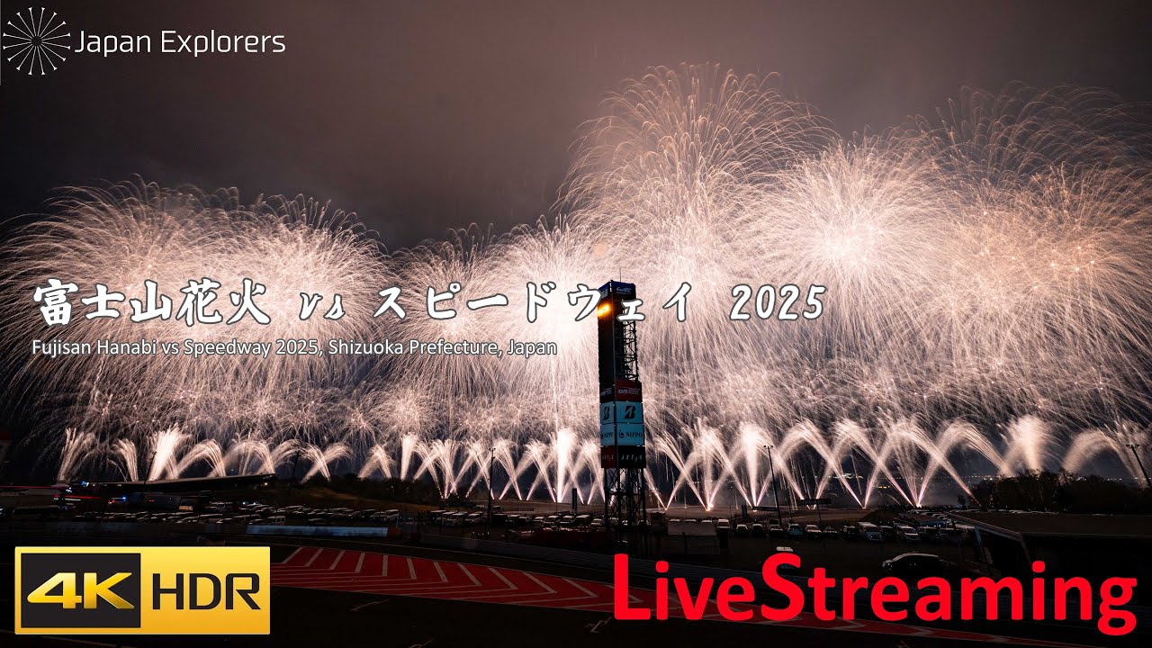 JapanExplorers富士山花火VSスピードウェイライブカメラは、静岡県小山町中日向の富士スピードウェイに設置された富士山花火VSスピードウェイが見えるライブカメラです。更新はリアルタイムで、YouTubeによる動画(生中継)のライブ配信映像です。Japan Explorersによる配信。