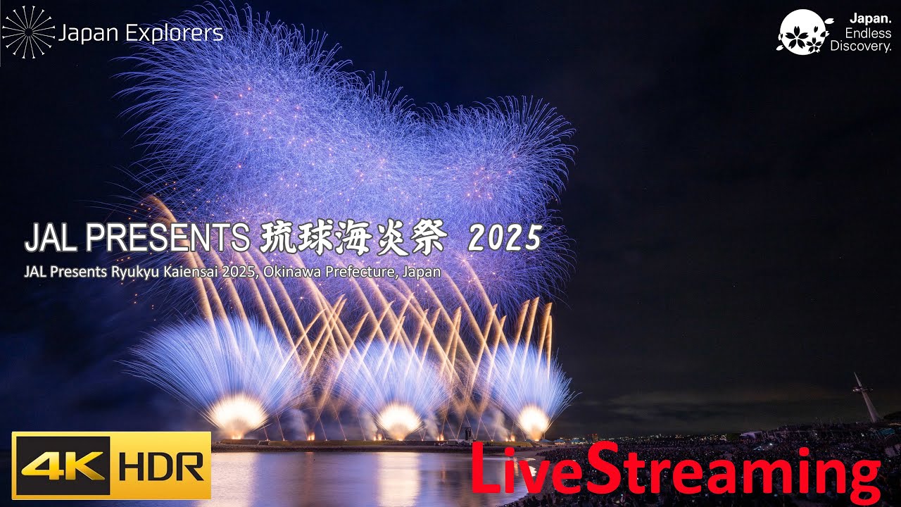 JapanExplorers琉球海炎祭ライブカメラは、沖縄県宜野湾市真志喜のぎのわん海浜公園に設置された琉球海炎祭が見えるライブカメラです。更新はリアルタイムで、YouTubeによる動画(生中継)のライブ配信映像です。Japan Explorersによる配信。