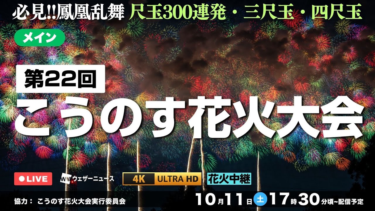 ライブカメラ https://www.youtube.com/watch?v=Oz4UQIQbEVM YouTube公式チャンネル https://www.youtube.com/@weathernews こうのす花火大会 ウェザーニュース |