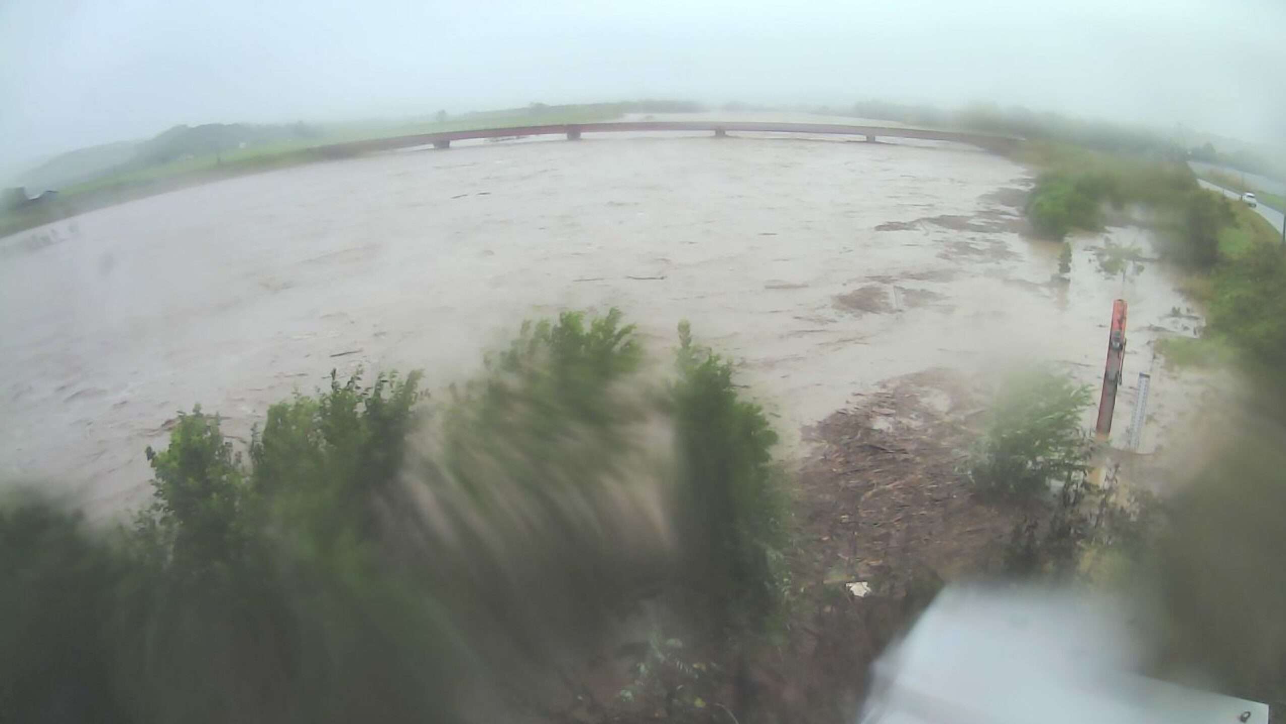 音別川川西橋ライブカメラ(北海道釧路市音別町音別) 2025年9月21日6時16分 大雨河川増水時 氾濫危険水位