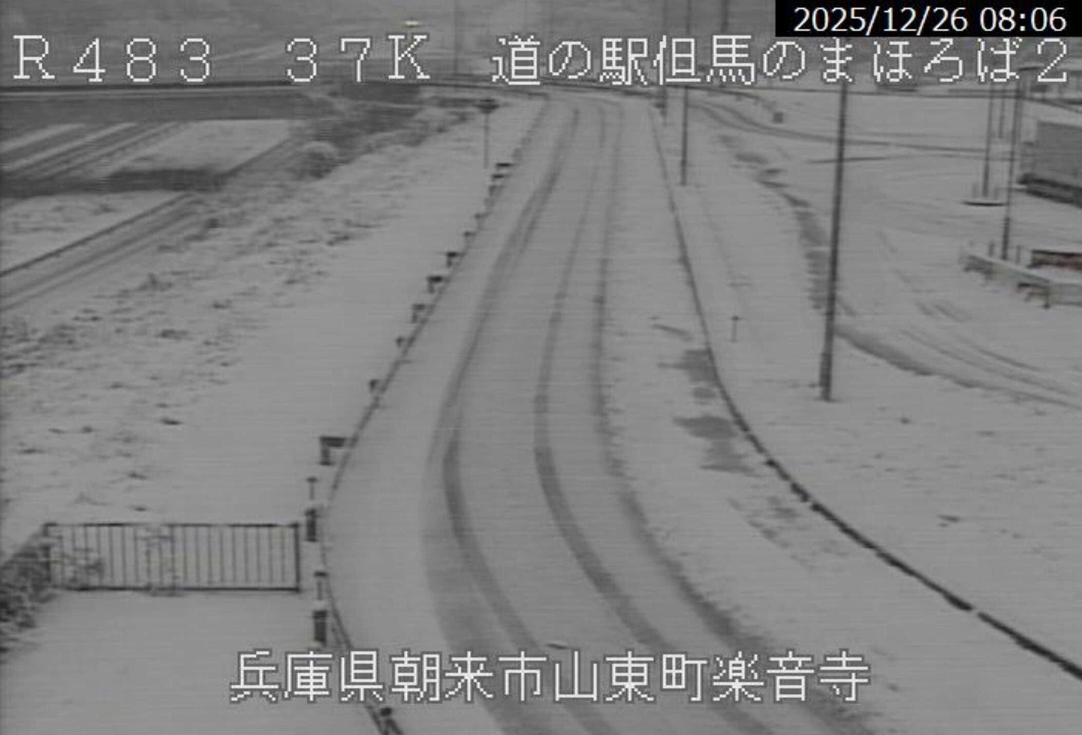国道483号道の駅但馬のまほろばライブカメラ(兵庫県朝来市山東町) 2025年12月26日 積雪