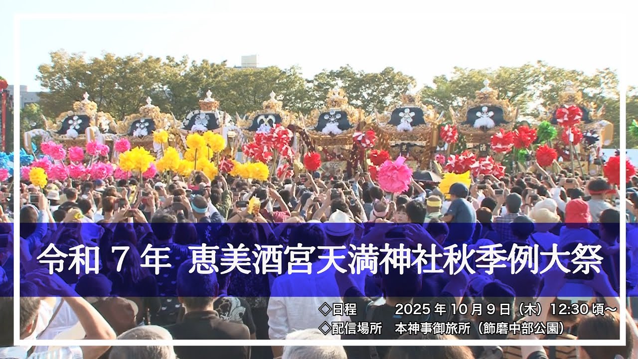 ライブカメラ https://www.youtube.com/watch?v=SO3y6DDs8gk YouTube公式チャンネル https://www.youtube.com/@wink1019 WINK姫路ケーブルテレビ 恵美酒宮天満神社秋季例大祭 |