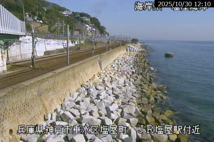 塩屋海岸JR塩屋駅付近ライブカメラは、兵庫県神戸市垂水区塩屋町のJR塩屋駅付近に設置された東播海岸・JR神戸線(塩屋駅~須磨駅)・塩屋駅(JR神戸線)付近・塩屋漁港付近が見えるライブカメラです。独自配信による静止画のライブ配信映像です。国土交通省による配信。