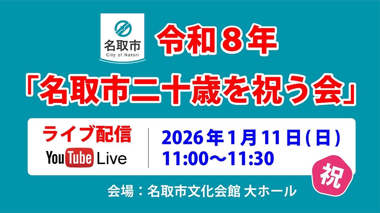 名取市二十歳を祝う会ライブカメラは、宮城県名取市増田の名取市文化会館大ホールに設置された二十歳の集い(二十歳のつどい・成人式・成人式典)が見えるライブカメラです。更新はリアルタイムで、YouTubeによる動画(生中継)のライブ配信映像です。名取市役所(名取市教育委員会)による配信。