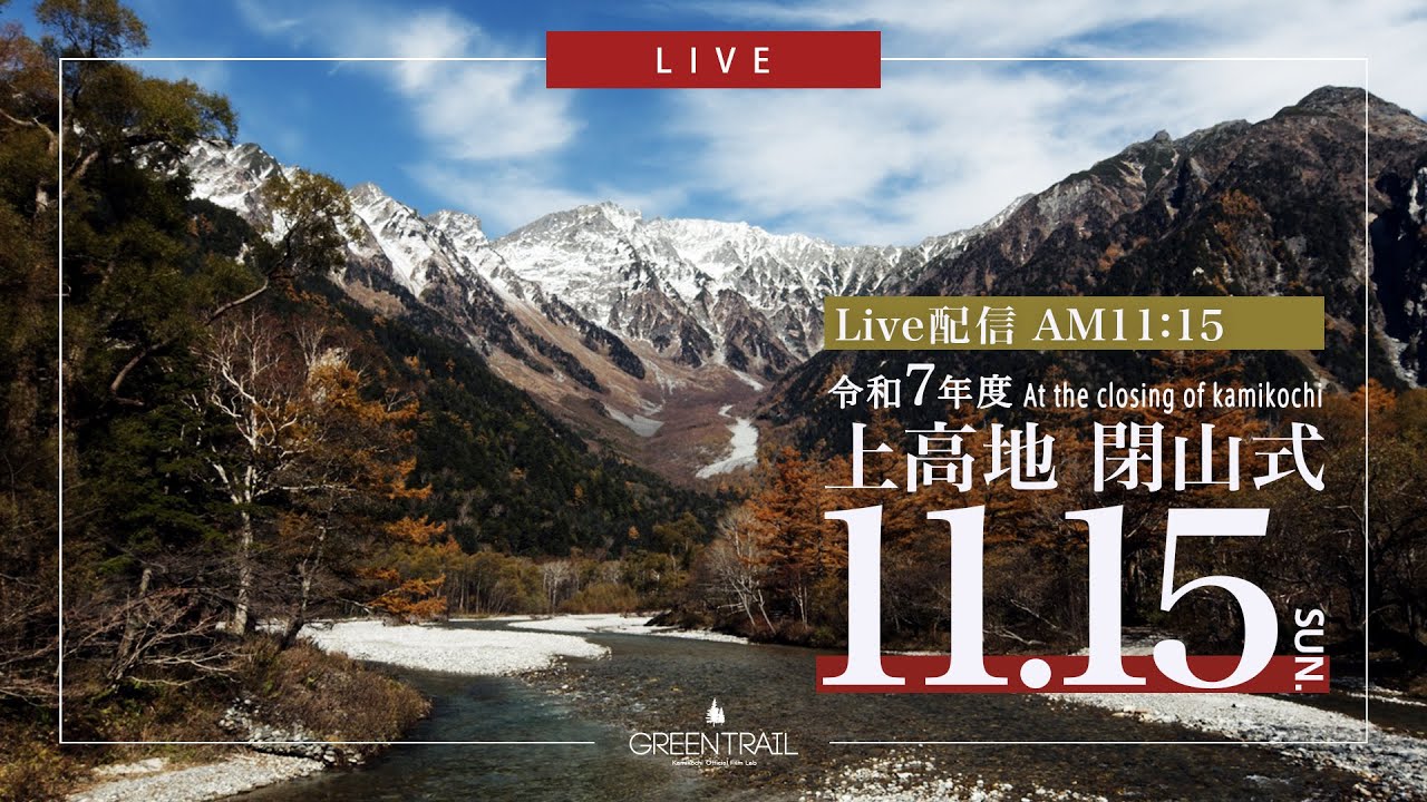 上高地閉山式ライブカメラは、長野県松本市安曇上高地の河童橋畔に設置された上高地閉山式が見えるライブカメラです。更新はリアルタイムで、YouTubeによる動画(生中継)のライブ配信映像です。KamikochiOfficial(上高地観光旅館組合)による配信。