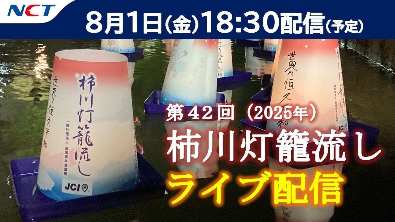 NCT柿川灯籠流しライブカメラは、新潟県長岡市の柿川(一之橋~追廻橋)に設置された柿川灯籠流しが見えるライブカメラです。更新はリアルタイムで、YouTubeによる動画(生中継)のライブ配信映像です。エヌ・シィ・ティ(NCT)による配信。