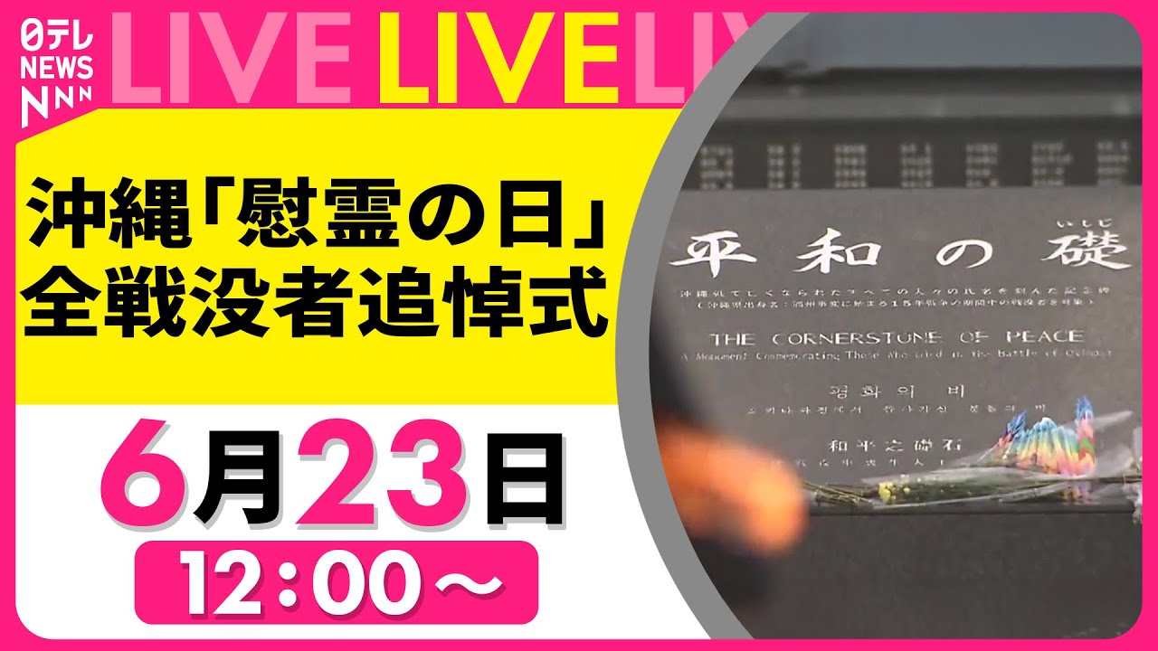 ライブカメラ https://www.youtube.com/watch?v=0orcwGIE6AI YouTube公式チャンネル https://www.youtube.com/@ntv_news 日テレNEWS24 沖縄全戦没者追悼式|総務省 https://www.soumu.go.jp/main_sosiki/daijinkanbou/sensai/attend/detail/okinawa_itoman_001/index.html |