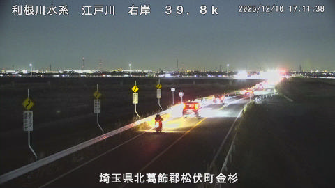 江戸川金杉ライブカメラは、埼玉県松伏町金杉に設置された江戸川・金野井用水路(江戸川右岸用水路)付近・野田橋・埼玉県道19号越谷野田線・千葉県道19号越谷野田線・埼玉県道21号三郷松伏線・埼玉県道42号松伏春日部関宿線・埼玉県道80号野田岩槻線・埼玉県道156号三郷幸手自転車道線・野田橋交差点が見えるライブカメラです。独自配信による静止画のライブ配信映像です。国土交通省による配信。