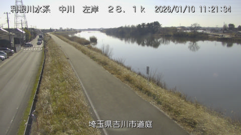 中川道庭ライブカメラは、埼玉県吉川市の道庭に設置された中川・埼玉県道67号葛飾吉川松伏線が見えるライブカメラです。更新は10分間隔で、独自配信による静止画のライブ配信映像です。江戸川河川事務所による配信。