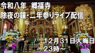 郷福寺除夜の鐘ライブカメラは、長野県塩尻市広丘郷原の郷福寺に設置された除夜の鐘・新年祈祷会が見えるライブカメラです。更新はリアルタイムで、YouTubeによる動画(生中継)のライブ配信映像です。郷福寺による配信。