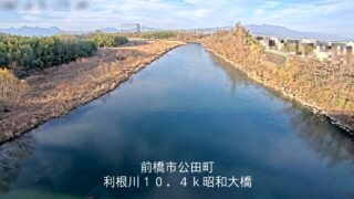 群馬県前橋市 利根川昭和大橋ライブカメラ(群馬県前橋市公田町) 利根川昭和大橋ライブカメラは、群馬県前橋市公田町の昭和大橋に設置された利根川が見えるライブカメラです。独自配信による静止画のライブ配信映像です。国土交通省による配信。 群馬県前橋市