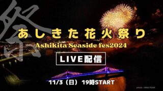 花火大会 あしきた花火祭りライブカメラ(熊本県芦北町田浦町) あしきた花火祭りライブカメラは、熊本県芦北町田浦町の御立岬公園に設置されたあしきた花火祭りが見えるライブカメラです。更新はリアルタイムで、YouTubeによる動画(生中継)のライブ配信映像です。まるっとあしきたによる配信。 花火大会