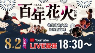 花火大会 とまみん苫小牧百年花火ライブカメラ(北海道苫小牧市) とまみん苫小牧百年花火ライブカメラは、北海道苫小牧市の苫小牧漁港区西側広場に設置されたとまみん苫小牧百年花火が見えるライブカメラです。更新はリアルタイムで、YouTubeによる動画(生中継)のライブ配信映像です。苫小牧タウンマネジメントによる配信。 花火大会