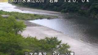 広島県三次市 江の川香淀ライブカメラ(広島県三次市作木町) 江の川香淀ライブカメラは、広島県三次市作木町の香淀(江の川カヌー公園さくぎ)に設置された江の川・江の川熊見川合流地点付近・江の川カヌー公園さくぎが見えるライブカメラです。更新は10分間隔で、独自配信による静止画のライブ配信映像です。三次河川国道事務所による配信。 広島県三次市