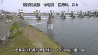 徳島県北島町 今切川今切川河口堰上流ライブカメラ(徳島県北島町鯛浜) 今切川今切川河口堰上流ライブカメラは、徳島県北島町鯛浜の今切川河口堰上流に設置された今切川・榎瀬江湖川・今切川榎瀬江湖川合流地点・今切川河口堰・鯛浜橋・徳島県道29号徳島環状線・徳島県道39号徳島鳴門線・鯛の浜渡し跡付近・牛王神社付近が見えるライブカメラです。独自配信による静止画のライブ配信映像です。国土交通省による配信。 徳島県北島町