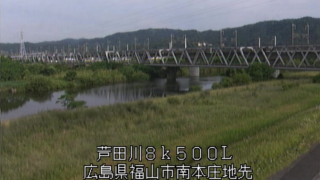 広島県福山市 芦田川南本庄ライブカメラ(広島県福山市南本庄) 芦田川南本庄ライブカメラは、広島県福山市の南本庄に設置された芦田川・JR山陽本線橋梁・JR山陽新幹線が見えるライブカメラです。更新は10分間隔で、独自配信による静止画のライブ映像配信です。福山河川国道事務所による配信です。 広島県福山市