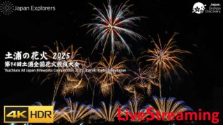 花火大会 JapanExplorers土浦全国花火競技大会ライブカメラ(茨城県土浦市佐野子) JapanExplorers土浦全国花火競技大会ライブカメラは、茨城県土浦市佐野子の桜川畔(学園大橋付近)に設置された土浦全国花火競技大会が見えるライブカメラです。更新はリアルタイムで、YouTubeによる動画(生中継)のライブ配信映像です。Japan Explorersによる配信。 花火大会