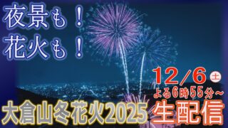 花火大会 JCOM大倉山冬花火ライブカメラ(北海道札幌市中央区宮の森) JCOM大倉山冬花火ライブカメラは、北海道札幌市中央区宮の森の大倉山ジャンプ競技場に設置された大倉山冬花火が見えるライブカメラです。更新はリアルタイムで、YouTubeによる動画(生中継)のライブ配信映像です。JCOMによる配信。 花火大会