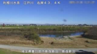 埼玉県春日部市 江戸川新宿新田ライブカメラ(埼玉県春日部市新宿新田) 江戸川新宿新田ライブカメラは、埼玉県春日部市新宿新田に設置された江戸川・江戸川河川敷運動広場・桜井取水樋管付近・埼玉県庄和浄水場付近が見えるライブカメラです。独自配信による静止画のライブ配信映像です。国土交通省による配信。 埼玉県春日部市
