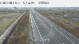 山形県東根市 東北中央自動車道東根野田ライブカメラ(山形県東根市野田) 東北中央自動車道東根野田ライブカメラは、山形県東根市野田に設置された東北中央自動車道・村山野川・小見川・袋田浄水場が見えるライブカメラです。更新は30分間隔で、独自配信による静止画のライブ配信映像です。山形河川国道事務所による配信。 山形県東根市