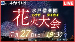 花火大会 水戸偕楽園花火大会ライブカメラ(茨城県水戸市) 水戸偕楽園花火大会ライブカメラは、茨城県水戸市の千波湖に設置された水戸偕楽園花火大会が見えるライブカメラです。更新はリアルタイムで、YouTubeによる動画(生中継)のライブ配信映像です。水戸市役所による配信。 花火大会
