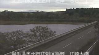 岩手県奥州市 北上川江崎大橋ライブカメラ(岩手県奥州市江刺区稲瀬水先) 北上川江崎大橋ライブカメラは、岩手県奥州市江刺区稲瀬水先の江崎大橋に設置された北上川・江崎大橋・岩手県道255号広瀬三ケ尻線が見えるライブカメラです。更新は10分間隔で、独自配信による静止画のライブ配信映像です。岩手河川国道事務所による配信。 岩手県奥州市