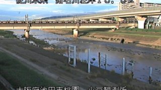 大阪府池田市 猪名川小戸ライブカメラ(大阪府池田市桃園) 猪名川小戸ライブカメラは、大阪府池田市桃園の小戸水位観測所(呉服橋下流約50m)に設置された猪名川・阪急電鉄宝塚本線(池田駅~川西能勢口駅間)・阪神高速11号池田線川西小花出入口付近・呉服座跡付近が見えるライブカメラです。更新は10分間隔で、独自配信による静止画のライブ映像配信です。猪名川河川事務所による配信。 大阪府池田市