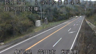 国道191号 【冬期限定】国道191号田万川トンネル東ライブカメラ(島根県益田市飯浦町) 国道191号田万川トンネル東ライブカメラは、島根県益田市飯浦町の田万川トンネル東に設置された国道191号(北浦街道)が見えるライブカメラです。更新は10分間隔で、独自配信による静止画のライブ配信映像です。浜田河川国道事務所による配信。 国道191号島根県益田市