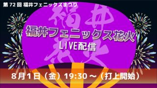 花火大会 FCTV福井フェニックス花火ライブカメラ(福井県福井市) FCTV福井フェニックス花火ライブカメラは、福井県福井市の足羽川河川敷(木田橋~板垣橋)に設置された福井フェニックス花火が見えるライブカメラです。更新はリアルタイムで、YouTubeによる動画(生中継)のライブ配信映像です。福井ケーブルテレビによる配信。 花火大会