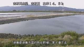 徳島県石井町 吉野川第十堰下流ライブカメラ(徳島県石井町藍畑第十) 吉野川第十堰下流ライブカメラは、徳島県石井町藍畑第十の第十堰下流に設置された吉野川・吉野川旧吉野川合流地点付近・吉野川神宮入江川合流地点付近・第十堰が見えるライブカメラです。独自配信による静止画のライブ配信映像です。国土交通省による配信。 徳島県石井町