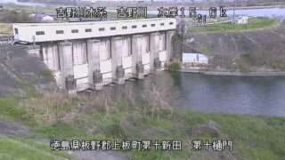 徳島県上板町 吉野川第十樋門ライブカメラ(徳島県上板町佐藤塚) 吉野川第十樋門ライブカメラは、徳島県上板町佐藤塚に設置された吉野川・旧吉野川・吉野川旧吉野川合流地点・吉野川神宮入江川合流地点付近・第十樋門・第十堰取水工・第十樋門管理所・上板町第十水防倉庫・徳島県道137号土成徳島線が見えるライブカメラです。独自配信による静止画のライブ配信映像です。国土交通省による配信。 徳島県上板町