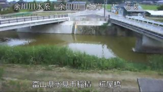 富山県氷見市 余川川糀屋橋ライブカメラ(富山県氷見市稲積) 余川川糀屋橋ライブカメラは、富山県氷見市稲積の糀屋橋水位観測所(糀屋橋左岸下流10m)に設置された余川川・糀屋橋が見えるライブカメラです。更新は10分間隔で、独自配信による静止画のライブ映像配信です。富山県庁土木部河川課による配信。富山県河川監視カメラ(富山県河川海岸カメラ)。 富山県氷見市