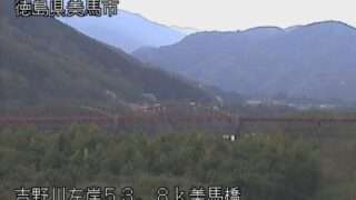 徳島県美馬市 吉野川美馬橋ライブカメラ(徳島県美馬市美馬町妙見) 吉野川美馬橋ライブカメラは、徳島県美馬市美馬町妙見に設置された吉野川・吉野川鍋倉谷川合流地点付近・吉野川嫁坂谷川合流地点付近・美馬橋・国道438号が見えるライブカメラです。独自配信による静止画のライブ配信映像です。国土交通省による配信。 国道438号徳島県美馬市