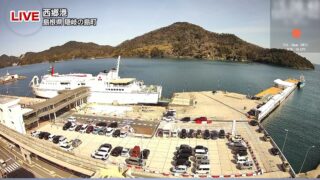 島根県隠岐の島町 NKT西郷港ライブカメラ(島根県隠岐の島町中町) NKT西郷港ライブカメラは、島根県隠岐の島町中町の隠岐ビューポートホテルに設置された西郷港・西郷港ターミナル・西郷湾・西郷港姫島灯標・隠岐汽船フェリー(フェリーおき・フェリーくにが・フェリーしらしま)・隠岐汽船高速船(超高速船レインボージェット)・島後島内(隠岐諸島)が見えるライブカメラです。更新はリアルタイムで、YouTubeによる動画(生中継)のライブ配信映像です。日本海テレビジョン放送による配信。 島根県隠岐の島町