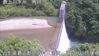 山形県戸沢村 角川三ツ沢砂防堰堤ライブカメラ(山形県戸沢村三ツ沢) 角川三ツ沢砂防堰堤ライブカメラは、山形県戸沢村三ツ沢の三ツ沢ダム(三ツ沢砂防堰堤)に設置された三ッ沢川(三ツ沢川)が見えるライブカメラです。更新は10分間隔で、独自配信による静止画のライブ配信映像です。山形河川国道事務所(山形河川防災情報)による配信。 山形県戸沢村