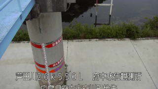 広島県府中市 芦田川府中水位観測所量水板拡大表示ライブカメラ(広島県府中市府川町) 芦田川府中水位観測所量水板拡大表示ライブカメラは、広島県府中市府川町の府中水位観測所(府川新橋下流約200m)に設置された芦田川・府中水位観測所量水板拡大表示が見えるライブカメラです。更新は10分間隔で、独自配信による静止画のライブ映像配信です。福山河川国道事務所(芦田川水系ライブカメラ)による配信です。 広島県府中市