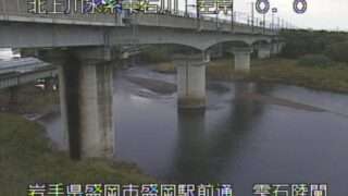 岩手県盛岡市 雫石川雫石陸閘ライブカメラ(岩手県盛岡市本宮) 雫石川雫石陸閘ライブカメラは、岩手県盛岡市本宮の雫石川左岸陸閘に設置された雫石川・北上川雫石川合流地点付近・北上川中津川合流地点付近・雫石川橋梁・東北新幹線・JR東北本線(仙北町駅~盛岡駅)が見えるライブカメラです。独自配信による静止画のライブ配信映像です。国土交通省による配信。 岩手県盛岡市