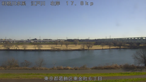 江戸川東金町6丁目ライブカメラは、東京都葛飾区東金町に設置された江戸川・江戸川左岸河川敷緑地・江戸川橋梁・JR常磐線(金町駅~松戸駅)・葛西神社付近が見えるライブカメラです。独自配信による静止画のライブ配信映像です。国土交通省による配信。