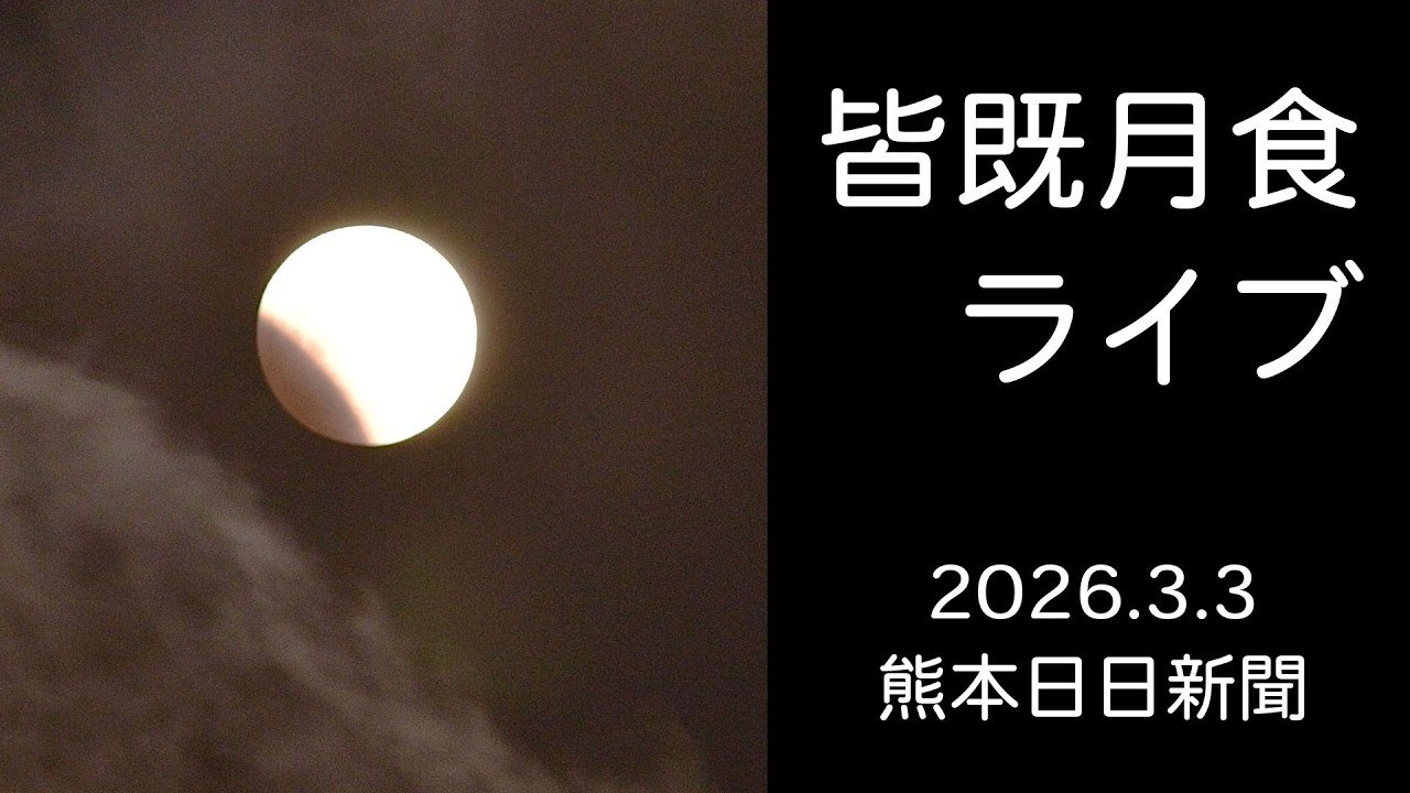 熊本日日新聞月食ライブカメラは、熊本県熊本市中央区世安の熊本日日新聞に設置された皆既月食・部分月食が見えるライブカメラです。更新はリアルタイムで、YouTubeによる動画(生中継)のライブ配信映像です。熊本日日新聞社による配信。